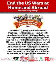 End United State’s Wars—Here and Abroad! This conference will feature two panels: 1) The Struggle for Immigrants in Illinois and 2) American Imperialism Abroad and will close with a plenary session on coordinated steps forward as a united front movement against US militarism.
