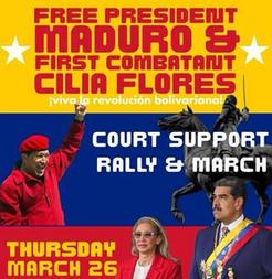 This is the New York City action which is part of a day of actions in support of President Maduro and Cilia Flores as they appear in a court in New York City