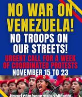 This move towards all-out war has nothing to do with drug trafficking. Venezuela has the greatest known oil reserves in the world - five times the U.S. oil reserves. The Venezuelan government refuses to be dominated by the U.S. It is determined to use its own oil, gas, coal, diamond and gold resources for healthcare, housing and education for the people of Venezuela, not for U.S. billionaires. The US attacks and open threats of regime change in Venezuela and Colombia are a blatant violation of international law.